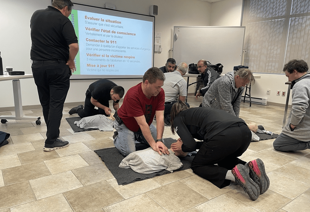 Nous avons récemment complété deux sessions de formation en secourisme, et nous sommes ravis de l’engagement remarquable de nos équipes, qui ont rassemblé un total de 27 participant(e)s ! Cette formation de 16 heures, valide pour une durée de 3 ans, permet à nos employé(e)s d’acquérir les compétences nécessaires pour intervenir de manière efficace en cas d’urgence médicale ou d’accident de travail, tout en répondant aux exigences de la CNESST.